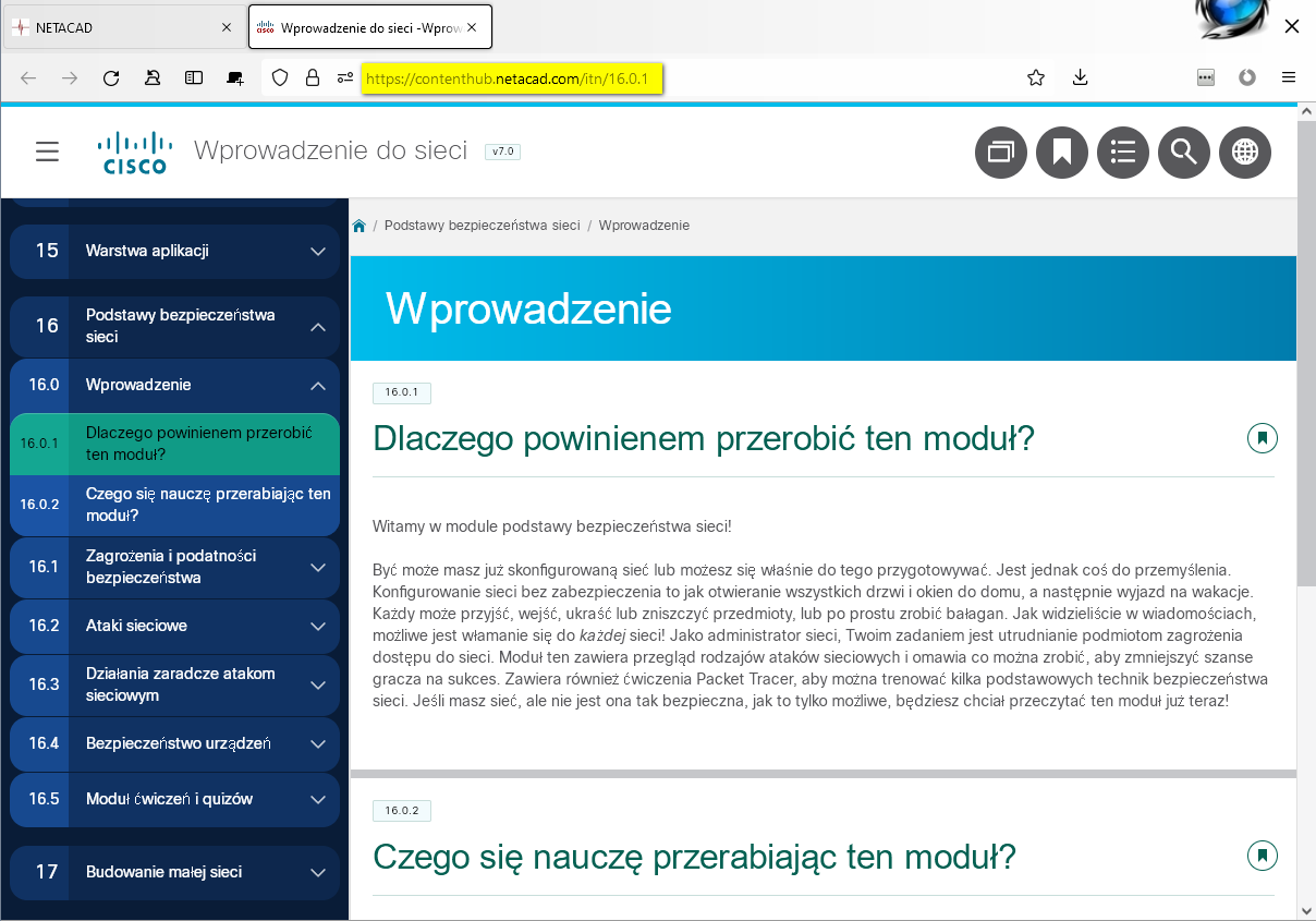 CCNAv7 - https://contenthub.netacad.com/itn/16.0.1 (podstawy bezpieczeństwa sieci)