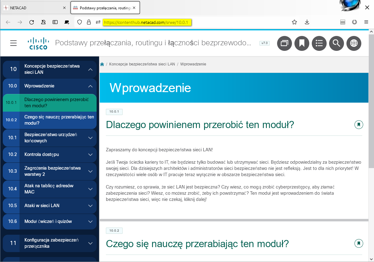 CCNAv7 - https://contenthub.netacad.com/srwe/10.0.1 (bezpieczeństwo sieci LAN)