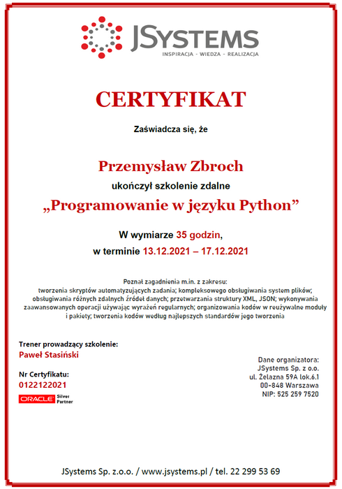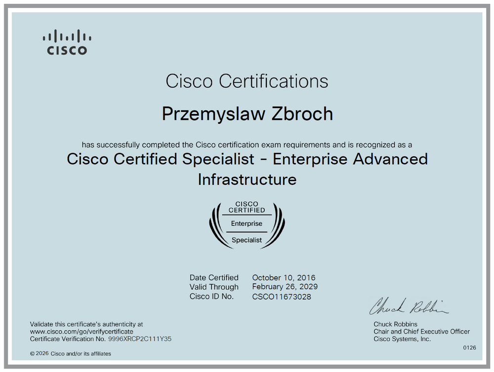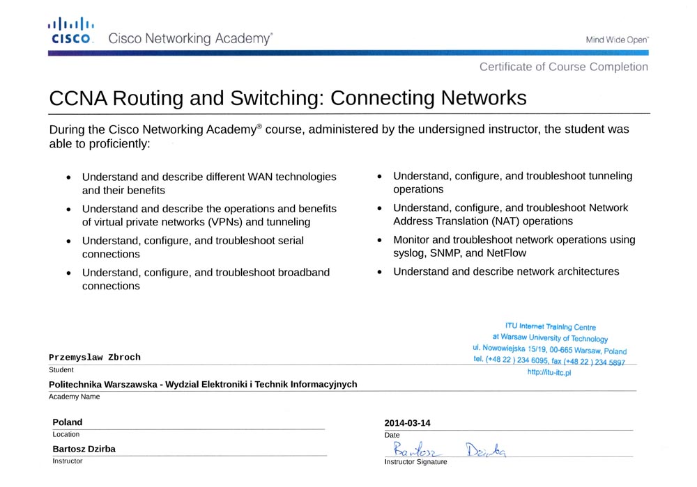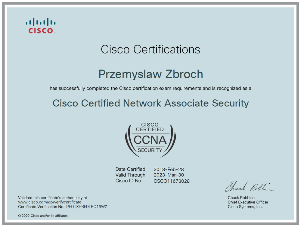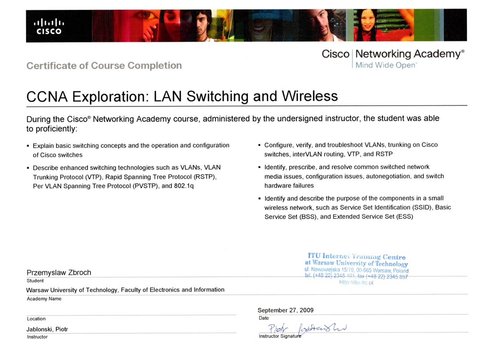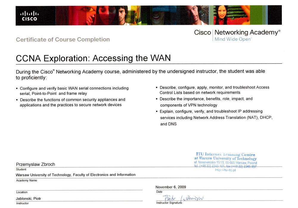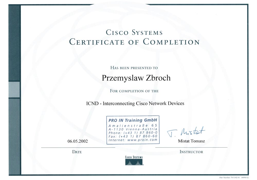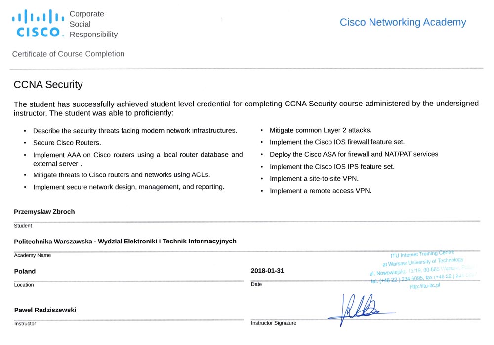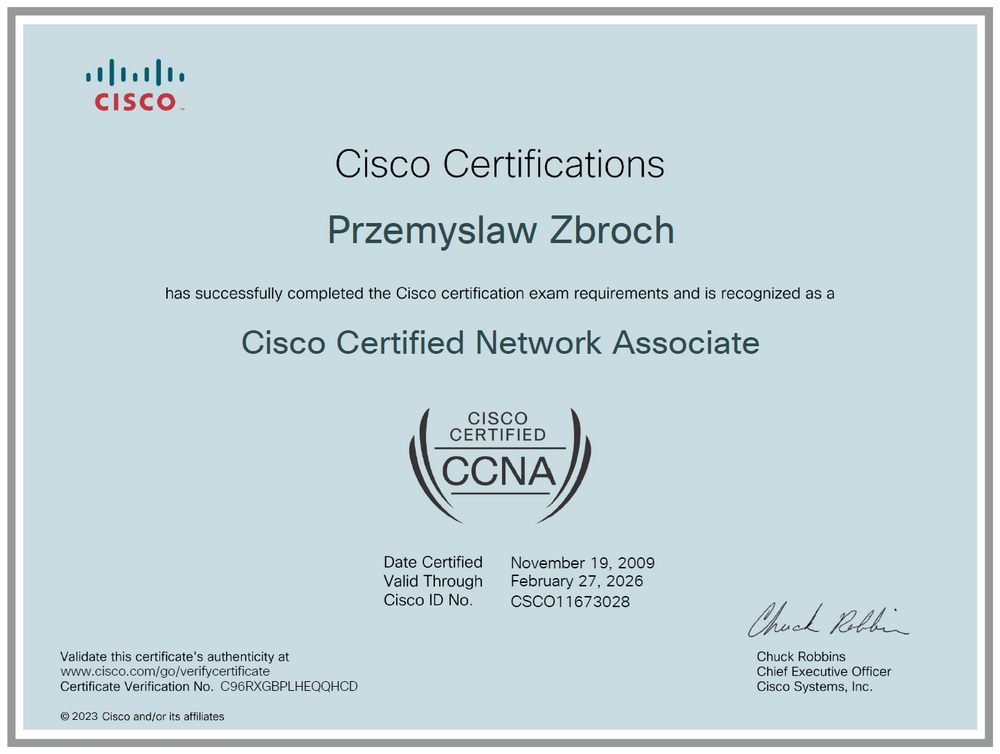 Od początku istnienia Akademii wszystkie nasze szkolenia CCNA prowadzi tylko jeden instruktor. Daje to gwarancję, że wszystkie opinie uczestników, które były zamieszczane na naszej stronie od dawna, oraz te nowsze na google, dotyczą tego samego szkolenia i tego samego prowadzącego. W innych akademiach często nie wiadomo na kogo się trafi, a od tego przecież zależy poziom kursu. U nas masz gwarancję niezmiennej jakości. Dokładne informacje o wykładowcy poniżej: