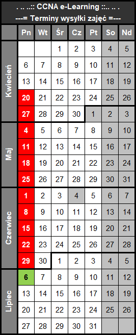 Chwilowo nie planujemy uruchomienia nowych szkoleń CCNA OnLine ani eLearning. Kolejne terminy będziemy proponować w drugiej połowie roku.