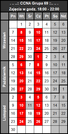 Poniżej prezentujemy zestawienie aktualnie planowanych szkoleń CCNA OnLine oraz eLearning. Na nasze zajęcia najepiej zapisać się przy użyciu formularzy dostępnych pod przyciskami ZAPISUJĘ SIĘ przy każdym szkoleniu. Po odebraniu zgłoszenia w pierwszej kolejności skontaktujemy się z Tobą mailowo i ustalimy dalsze kroki w zależności od wybranego wariantu szkolenia. Na tym etapie nie dokonujesz jeszcze żadnej wpłaty, poprosimy o to dopiero wtedy, gdy uruchomienie kursu zostanie potwierdzone oraz gdy dopełnimy formalności. Wszystkie szczegóły otrzymasz w naszej odpowiedzi mailowej.